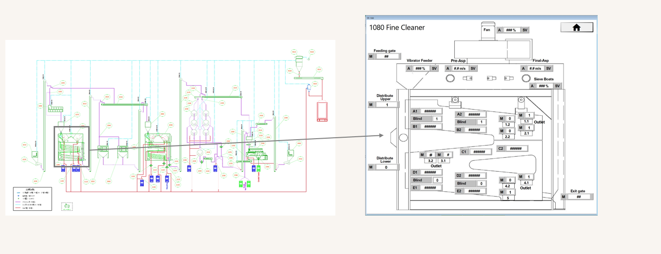 Air Screen Cleaner: Konfiguriert automatisch das Zuführmodul, legt die erforderlichen Siebe fest und stellt die Drehzahl der Maschine ein. Die Absaugung wird über das Rezeptursystem gesteuert und durch das Automatisierungssystem Navigator 4.0 konsistent aufrechterhalten.