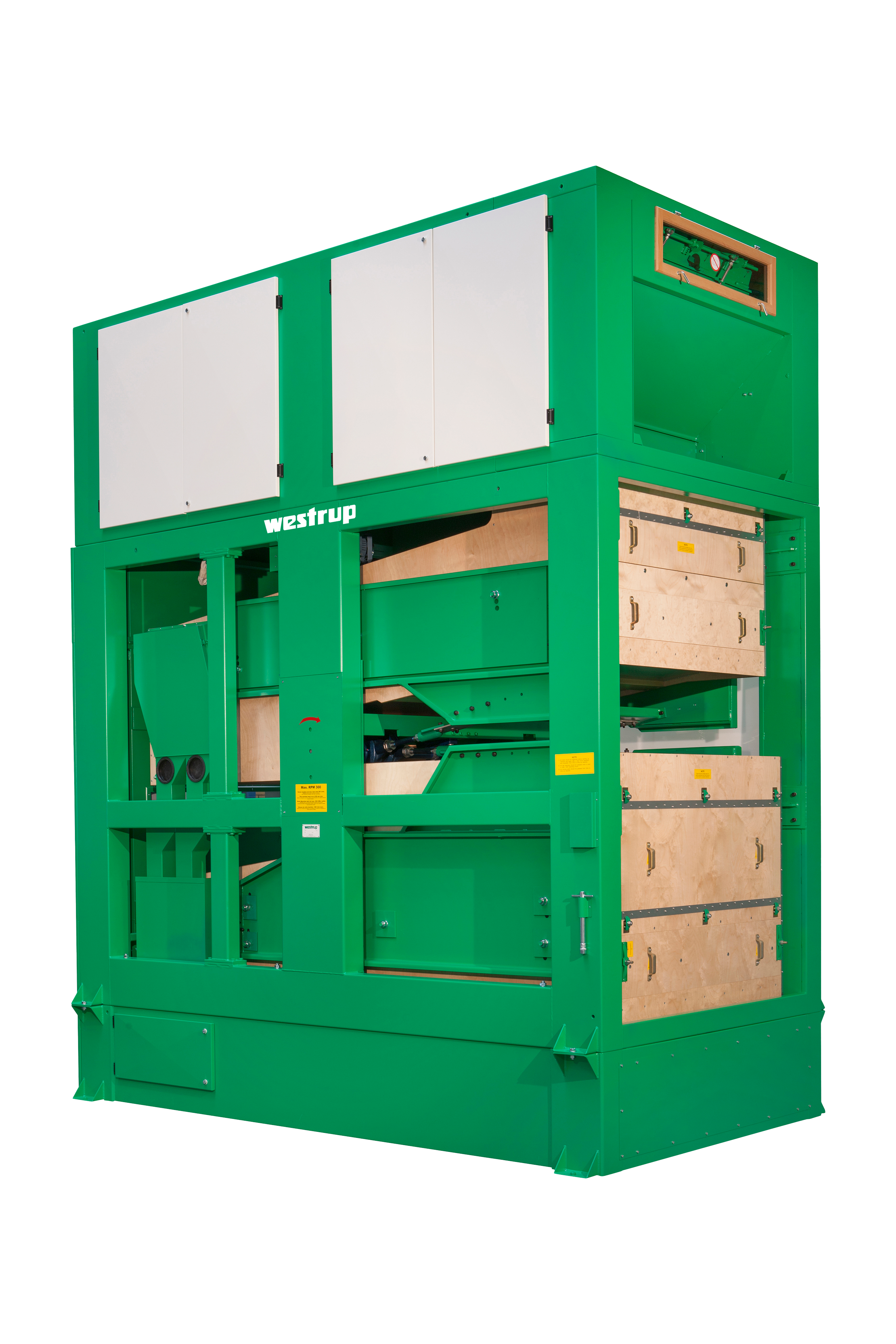 Separates coarse impurities, such as paper and wood pieces, from the main seed.